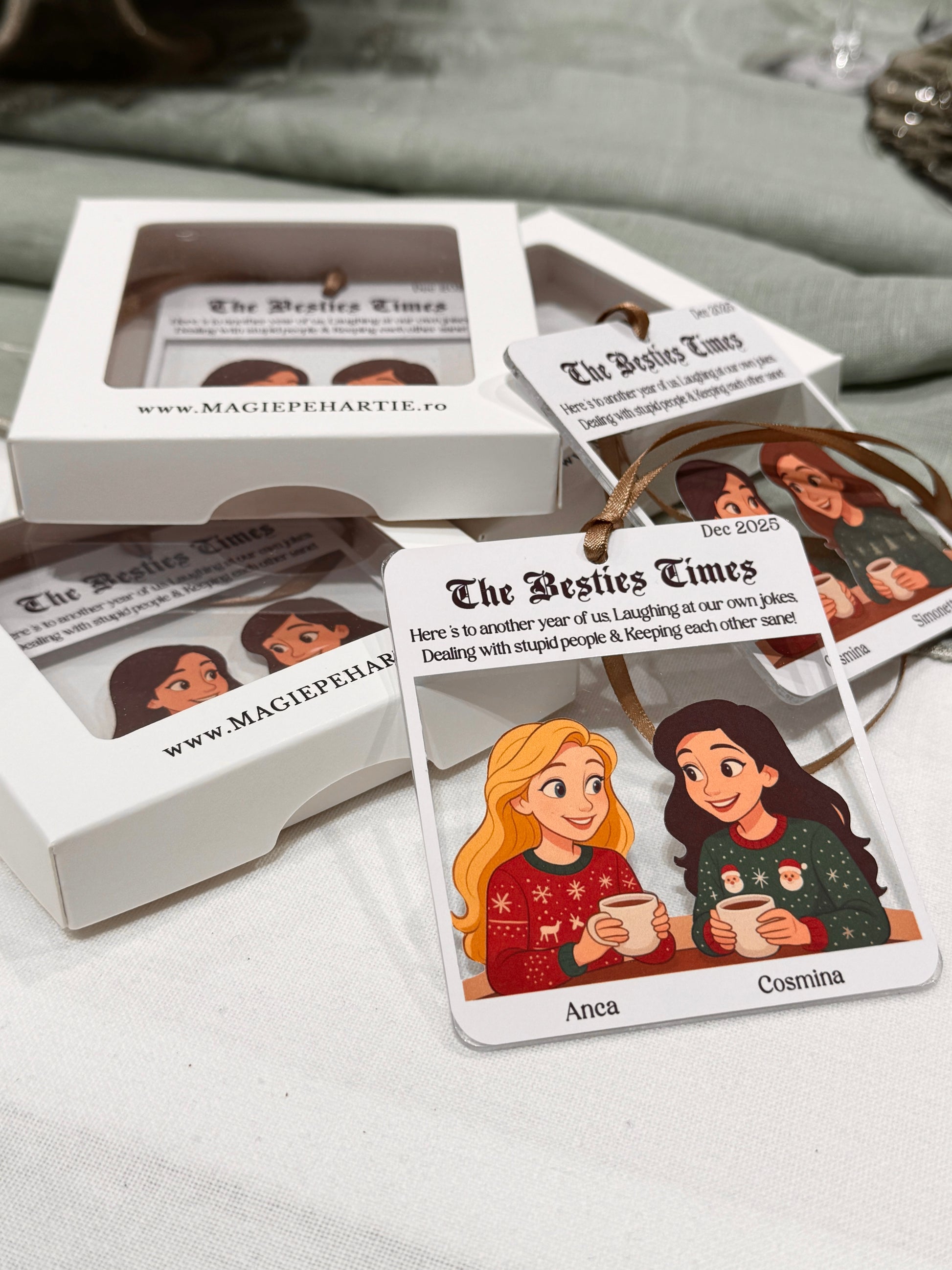 Glob in formă de ziar, din plexiglas, personalizat cu personajele dorite și mesaj special.